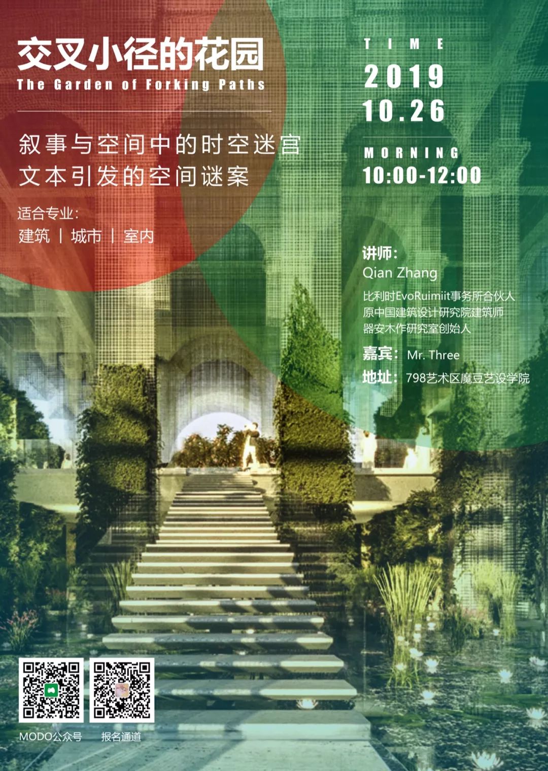 免费线下沙龙大纲 2.交叉小径的花园:介绍博尔赫斯的作品与思想及时代思潮 3.作家建筑——西扎、big-罗格斯中心主义/现象学完形学、刘家坤、阿尔维诺博尔赫斯一系的南美/南欧迷幻文学、库哈斯(癫狂的纽约-城市角度调查文学) 4.文学中的建筑:交叉小径的花园,不存在的城市,巴别塔的隐喻,牛头怪迷宫,莫扎特与狼帮,红楼梦,金阁寺 5.自由疑问解答与兴趣方向选择 参考书目
